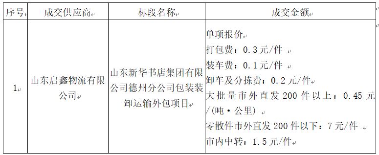 一、项目名称:云鼎国际新华书店集团有限公司德州分公司包装装卸运输外包项目